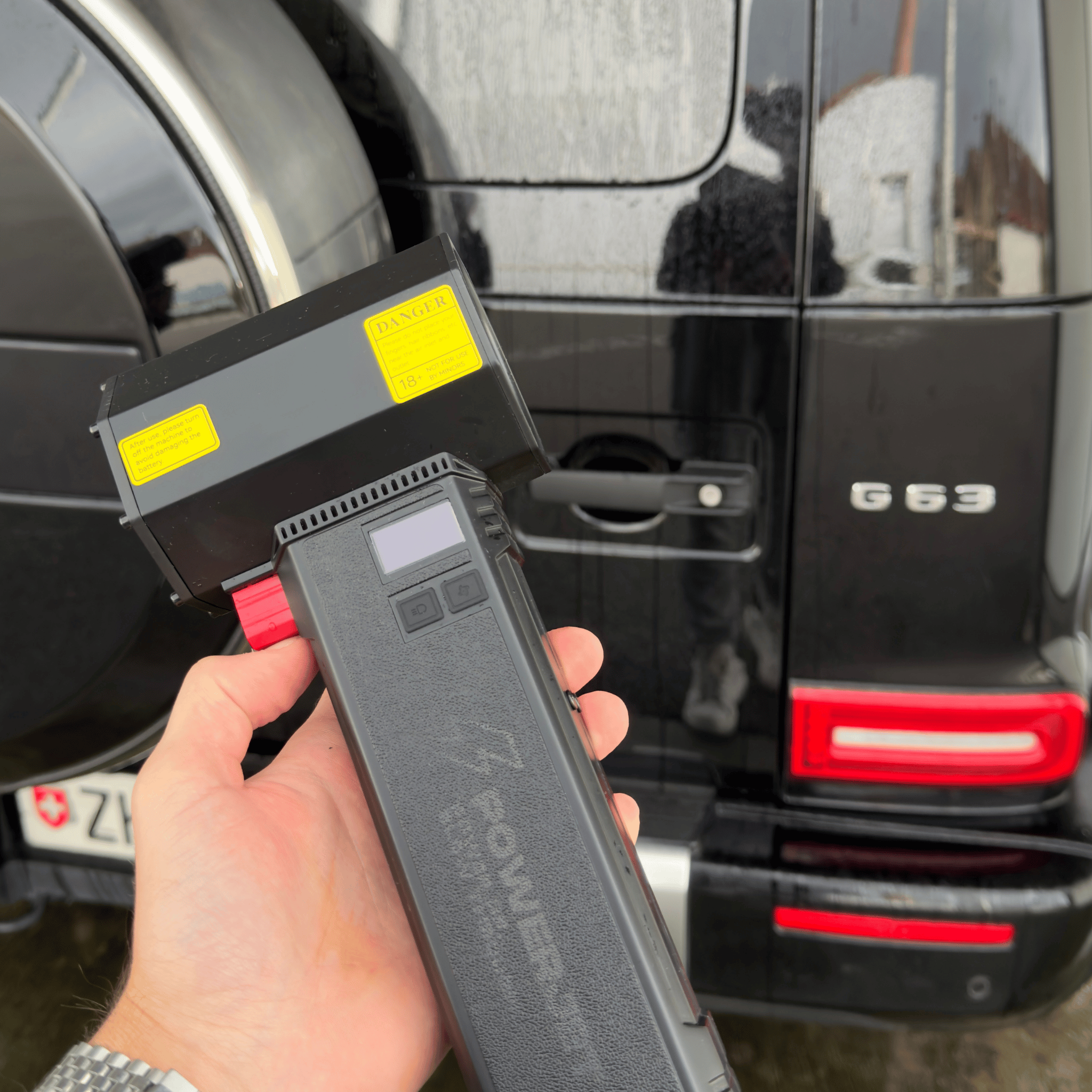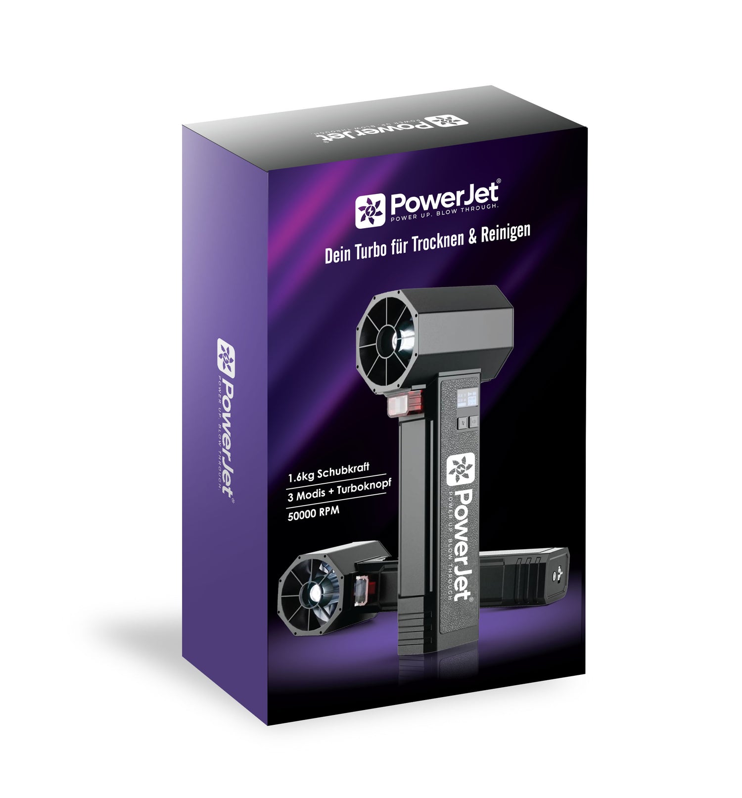 PowerJet® ist mit einer 4000mAh Batterie ausgestattet, die bei maximaler Leistung eine Laufzeit von 7-15 Minuten bietet. Das macht es perfekt für schnelle und effiziente Trocknungsvorgänge.