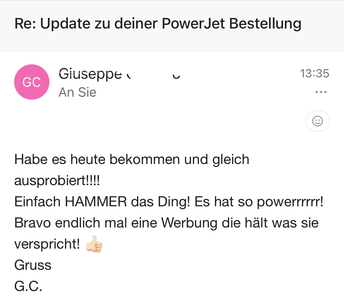 Mehr als 1'259 zufriedene Kunden benutzen den PowerJet täglich! ⭐
